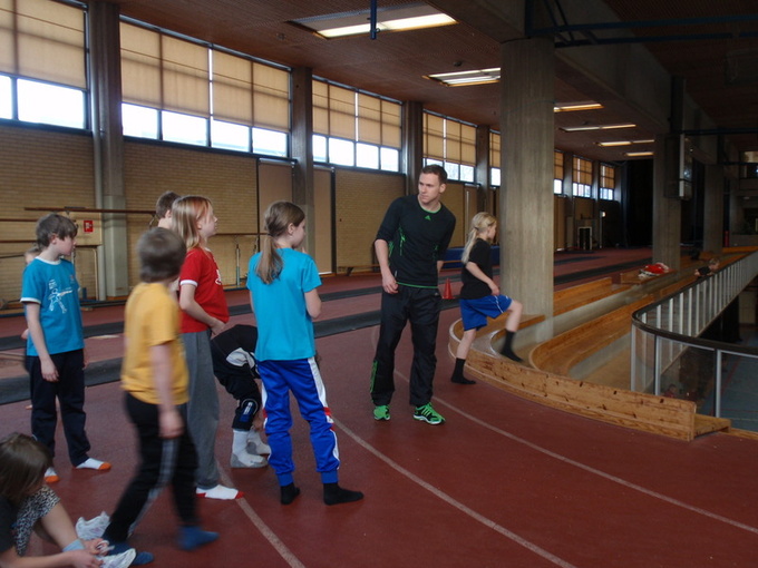 Kisailujen päätyttyä Välimäki veti innokkaalle nuorisojoukolle vielä puolen tunnin treenin, joka sisälsi mm. loikka- ja nopeusharjoituksia. Kiitimme Mattia lämpimästi vierailusta ja lupasimme lähteä täydellä bussilla Suomi-Ruotsi –maaotteluun kannustamaan niin häntä kuin koko Suomen joukkuetta voittoon! Kuvia illasta!