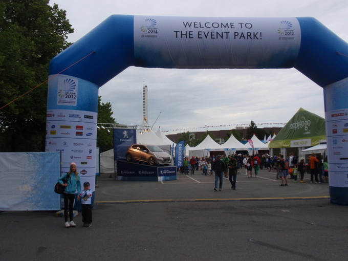 ![]() Carita ja Kuisma tapahtumapuiston portilla |