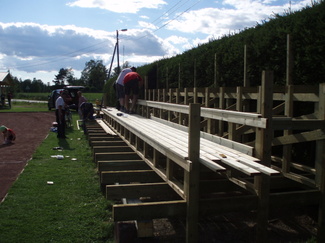 KIUKAISTEN KISAILIJAT järjestivät talkoon kesällä 2008 Kiukaisten urheilukentällä. Seuran talkoolaiset purkivat ja tekivät uuden katsomon vanhan, jo "vaaralliseksi" todetun tilalle! Talkooväkeä oli mukavasti aina paikalla ja muutaman illan jälkeen kentällä komeilikin uusi rakennelma, johon teimme heti pyynnöstä parannuksia.