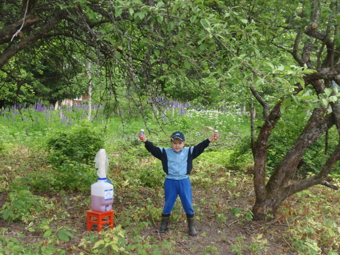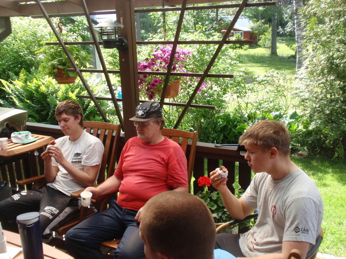 ![]() Urakan jälkeen maistui mehu ja makkara, jota Virpi maalauksen lomassa kävi grillailemassa... |