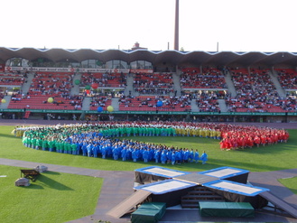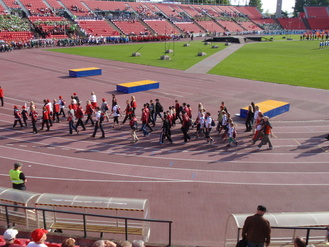 Kisailijoita marssin loppusuoralla Ratinan stadionilla.
