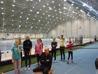 Korkeushypyn treeniryhmä Jyskyn valmentavan silmän alla. Carita joukon nuorimpana. |