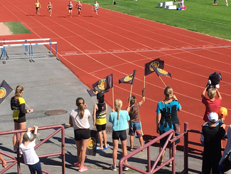 ![]() Kiukaisten Kisailijoiden liput liehuivat, kun t10-sarjan Maija Walleniusta kannustettiin 60m finaaliin. |