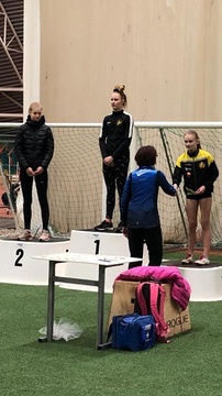 ![]() Neea Nummi kahdesti palkintopallille pm-kisoissa. Kuva pituushypyn palkintojenjaosta (kuva: Pirjo Nummi) | ![]() Konsta Saari nappasi P12-sarjassa kultaa 1000 m:n juoksulta ajalla 3.47,59 (kuva: Leena Saari) |