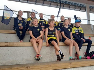 ![]() Keltamustaa kisaväriä katsomossa, kuvassa ylh. vasemmalta Inkeri Rantapelkonen, Netta Nummi, Neea Nummi, Venla Saari, Konsta Saari, Jami Nummi sekä alarivillä Vilma Lehtonen, Veikka Saari, Maija Wallenius ja Janni Majuri. Useiden lajien vuoksi kaikkia ei saatu kerralla samaan kuvaan (kuva: Merja Rantapelkonen) |