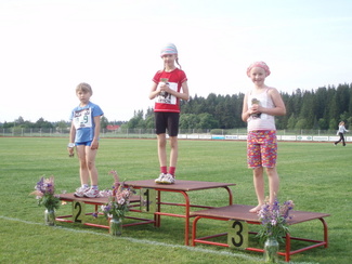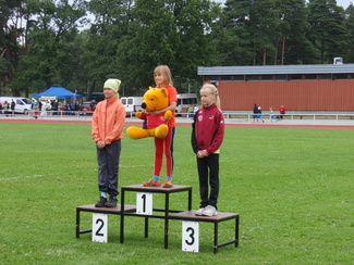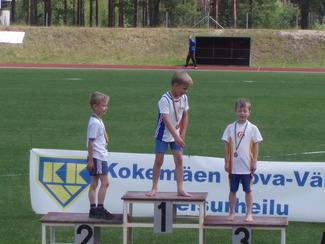 ![]() Punkalaitumen juhannuskisoissa mitalisateessa Kisailijoita. Carita Haapaniemi kultaa ja Esteri Nieminen pronssia. | ![]() Vuoden 2009 piirikunnallisten tyttöjen 9-vuotiaiden korkeuden mitalikolmikko. Carita Haapaniemelle pronssia. |